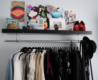 | First – I’m the biggest clothes hoarder I know. This addition to my room was an attempt to expand my closet, which helped at the time, but as I accumulate more things, it is inherently less helpful. My favorite part about this shelf is that it holds so many sentimental things. My message board has mementos from random events and places I’ve been. Everything on that shelf means something to me. So much functionality in such a cool way. Pats on the back for me. |