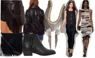 One of the trends that I am most excited about is fringe. There is nothing more carefree than fringe. Fringe is so playful and versatile. I have seen fringe used as trimming on shorts, skirts, motorcycle jackets, and many accessories. I’m sure this trend will die by next spring but I plan on wearing this trend until its dying day.