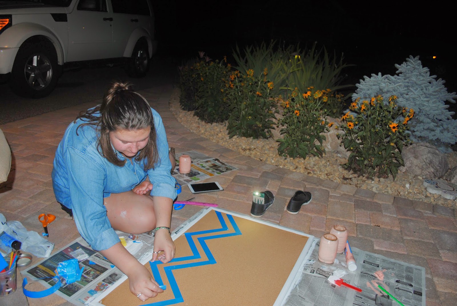 Let me preface this post by saying that nine p.m. on a Thursday is not ideal for starting a do-it-yourself pinterest project. This post is definitely not my finest hour for photography but just bear with me here. As I’m sure you know by now, I am moving to college in almost a month, and I have been working tirelessly (sort of) to find furnishings and decorations for my dorm. I knew I needed some sort of bulletin board to put on the walls but I didn’t want to shell out the money for one from Pottery Barn and I also didn’t want some boring piece of cork covered plywood from Office Max hanging on my walls either. I then turned to pinterest; hub of every creative project you could ever imagine. I found one that seemed easy enough and thankfully, turned out not too shabby. I decided to document it in case anyone reading this might want to try to outdo my performance, which wouldn’t be hard. The project took about forty minutes from start to finish, and it wasn’t particularly expensive either, which was a plus! Here’s what I did:
