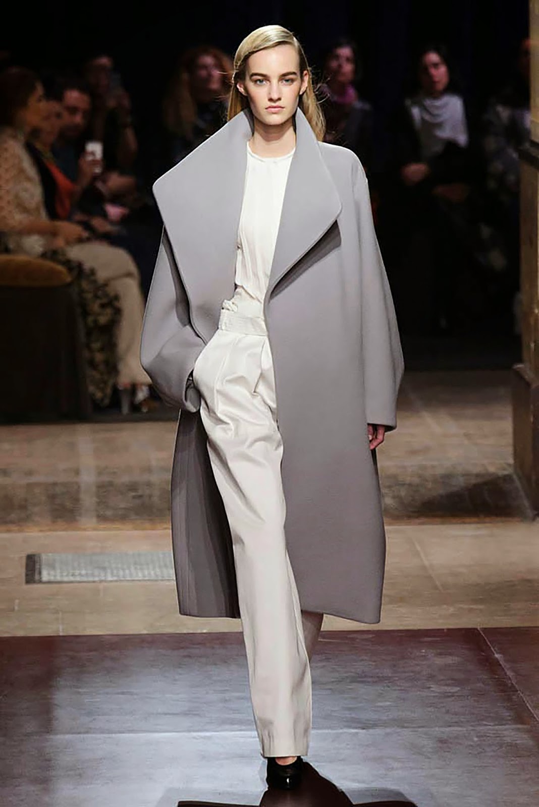 I am absolutely head-over-heels in love with this over-sized coat from Hermes. This coat is from the Hermes 2014 Fall runway. I love how the color of the coat compliments the soft lines of the shape itself. The coat is a statement piece, but not in an obnoxious way.