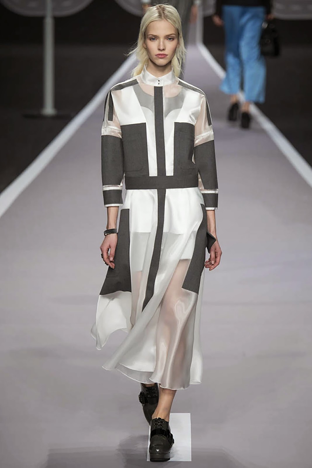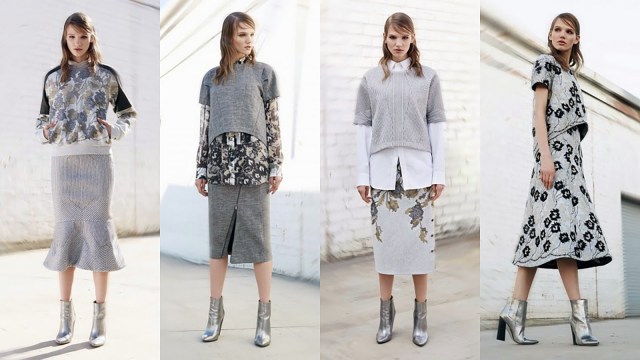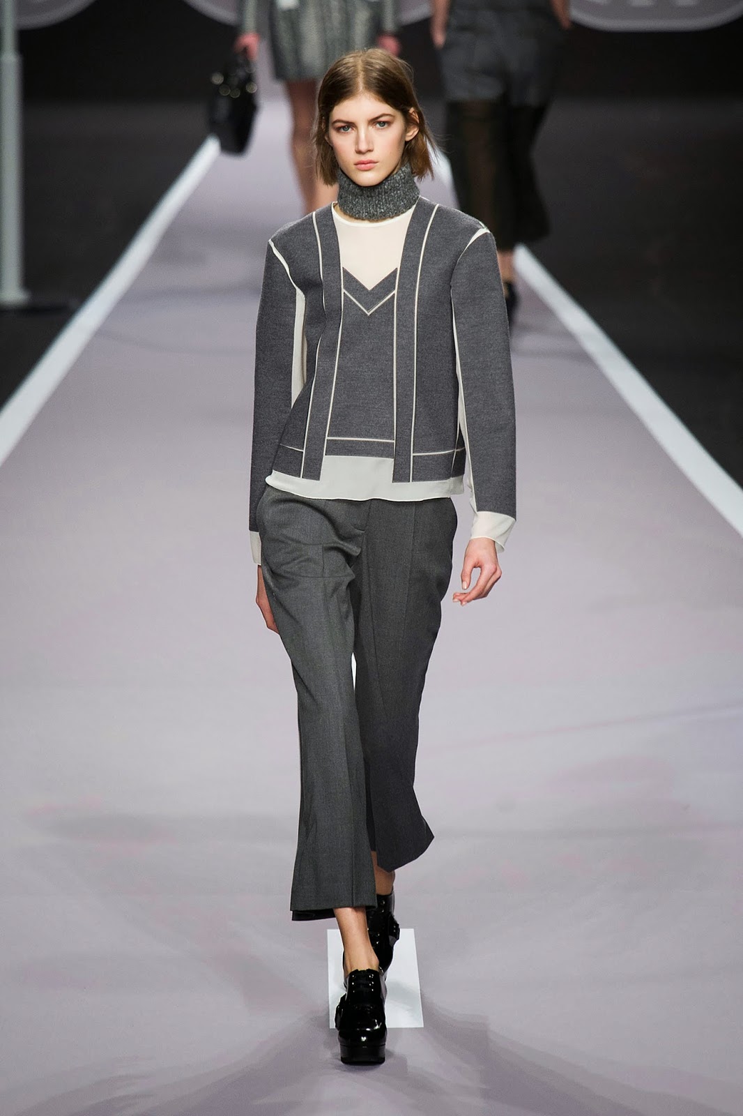 These are some of the looks from the Pre-Fall 2014 BCBG runway, I love that they are mixing patterns and metallics to the grey basics. The patterns add depth and interest to the outfit without being overbearing to the grey tones.