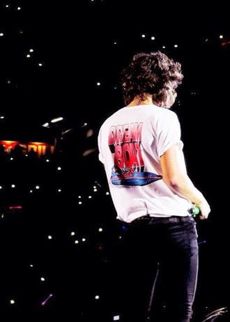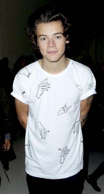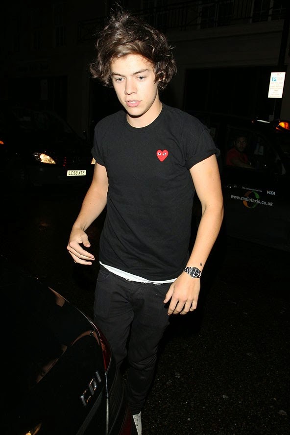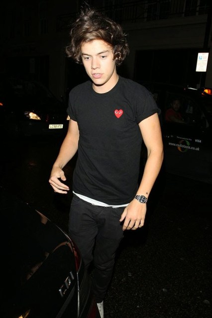 Pictured above: Styles being casual in a Comme Des Garcons t-shirt, which probably cost him a fortune. But what’s pocket change to a millionaire?