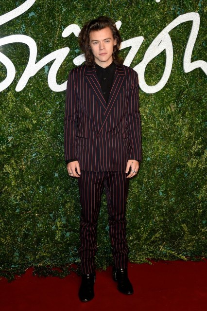 Pictured above: Styles’ new favorite designer seems to be Lanvin, which I fully approve of. The red pinstripe suit he donned to the 2014 British Fashion Awards is probably one of my favorite suits I’ve seen. It’s well styled and unique without going over the top.