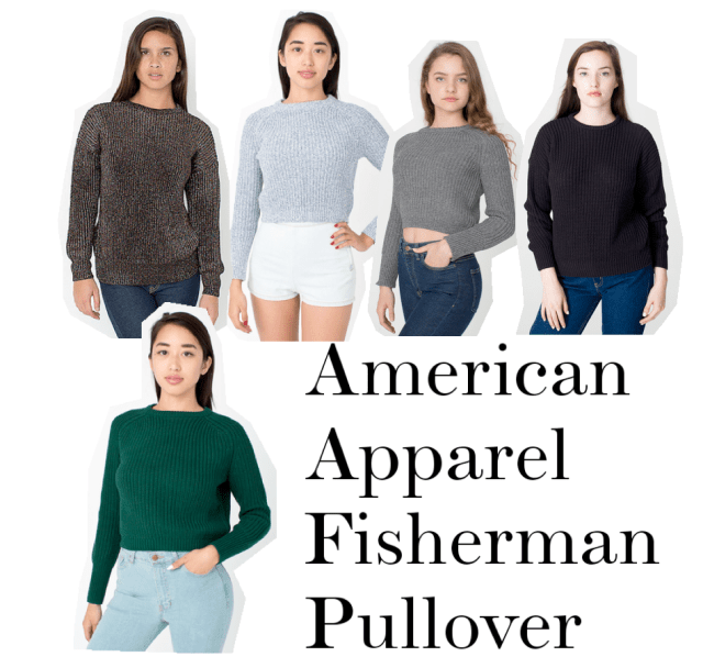 This is one of the two trends I just hopped on the bandwagon for. I have been eyeing the American Apparel fisherman pullover for probably two years now. It took me so long to finally commit myself to the piece because it comes with a pretty hefty price tag. Sweaters are something I can justify spending money on, but I had to make sure I really wanted it. I finally purchased it though, and let me just tell you, I haven’t taken it off since. This sweater is one of my all time favorite pieces. I bought it in black, and I’m already planning on making additions to my collection in other colors. This sweater is so comfortable, cozy, and easy to style. I love that I can dress it up or down and can even layer it with other pieces. Seriously, you need to add this sweater to your wardrobe.