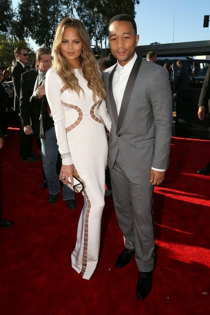 Not only is this couple everyone’s relationship goals, they are also now everyone’s outfit goals. These two look amazing. Chrissy’s dress is simple but sexy at the same time. The cut outs on the top and sides of the dress are intricate and modern and her accessories and makeup are kept simple as well. John looks dapper, as always in his grey suit. They compliment each other nicely and are pretty much the perfect pair.